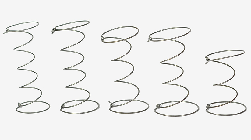 Los resortes Bonell son espirales de forma bicónica como el reloj de arena unidos por una malla de metal.